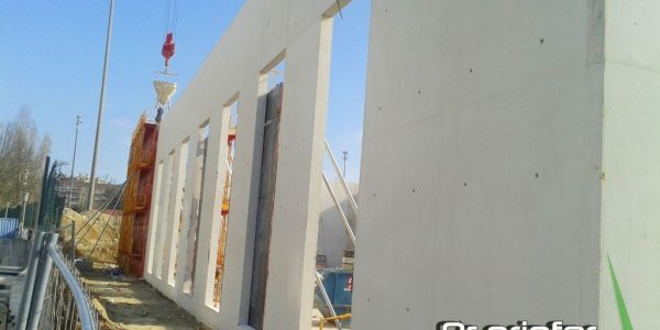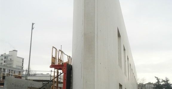 A construção do Ginásio Gimnodesportivo em Caluire, Lyon em França foi dos trabalhos mais exigentes que fizemos até hoje. O projecto consistia na execução de muros em Betão Branco respeitando calpinagem em projecto, a 7,45 m de altura, usando betão autonivelante.